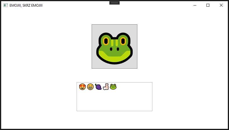 Dle níže uvedeného obrázku vypracujte WPF aplikaci, ve které se budou pomocí tlačítka vybírat emoji. Vybrané emoji se budou postupně zapisovat do TextBoxu.