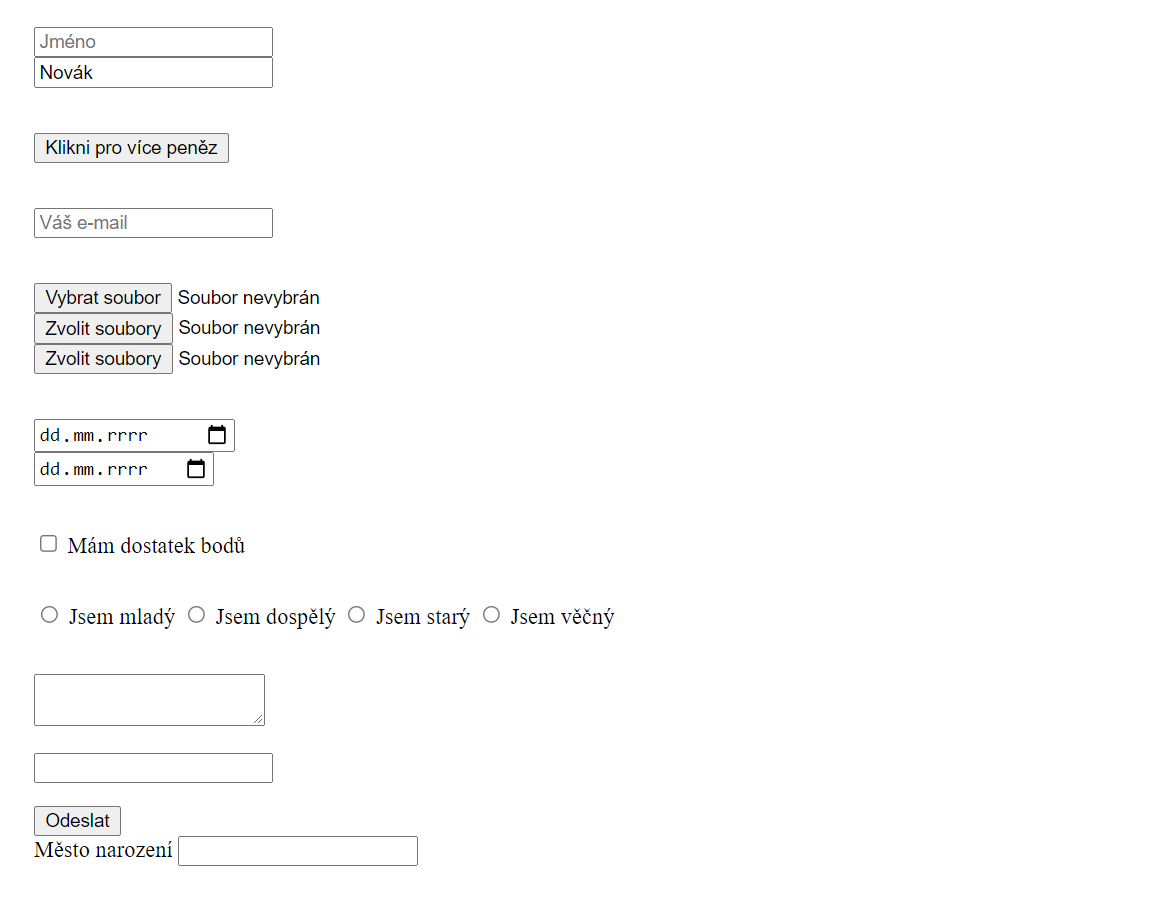 type="radio"name určuje unikátní jméno — a jeho hodnotu