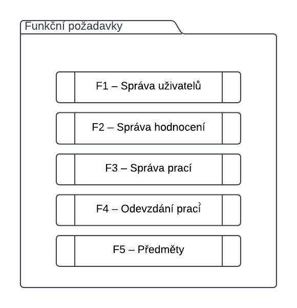 Každý případ užití popisuje jednu akci. Akce je závislá na určitých funkčních požadavcích.